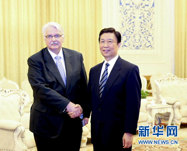 4月26日,国家副主席李源潮在北京会见波兰外长瓦什奇科夫斯基。 新华社记者 丁林 摄