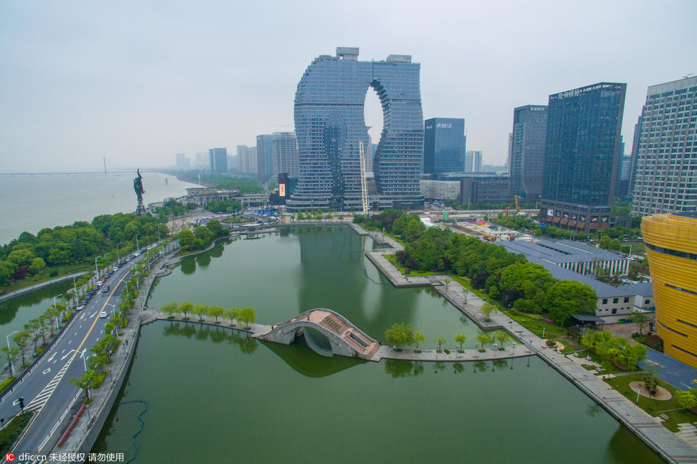 杭州钱江边一奇葩建筑被称"粗细腿"