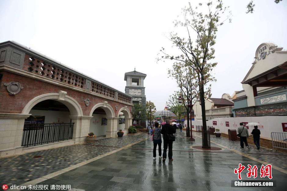 2016年4月26日,上海,随着地铁11号线迪士尼站的开通,迪士尼小镇也首次向世界揭开神秘面纱。迪士尼小镇正对迪士尼站1号口,是一个国际化的购物餐饮娱乐区。目前各建筑已完工,正在进行内部装修。图片来源:东方IC 版权作品 请勿转载