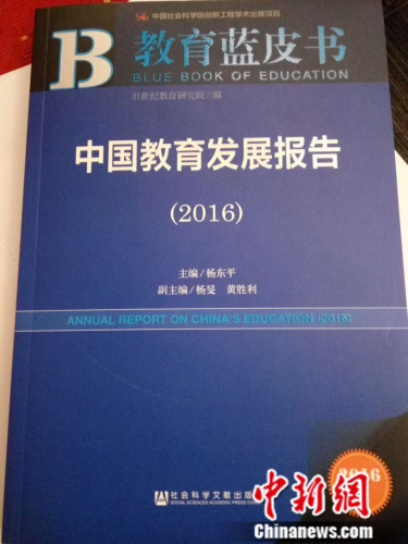 这份报告全称为《教育蓝皮书——中国教育发展报告(2016)》,由21世纪教育研究院、社会科学文献出版社联合发布。