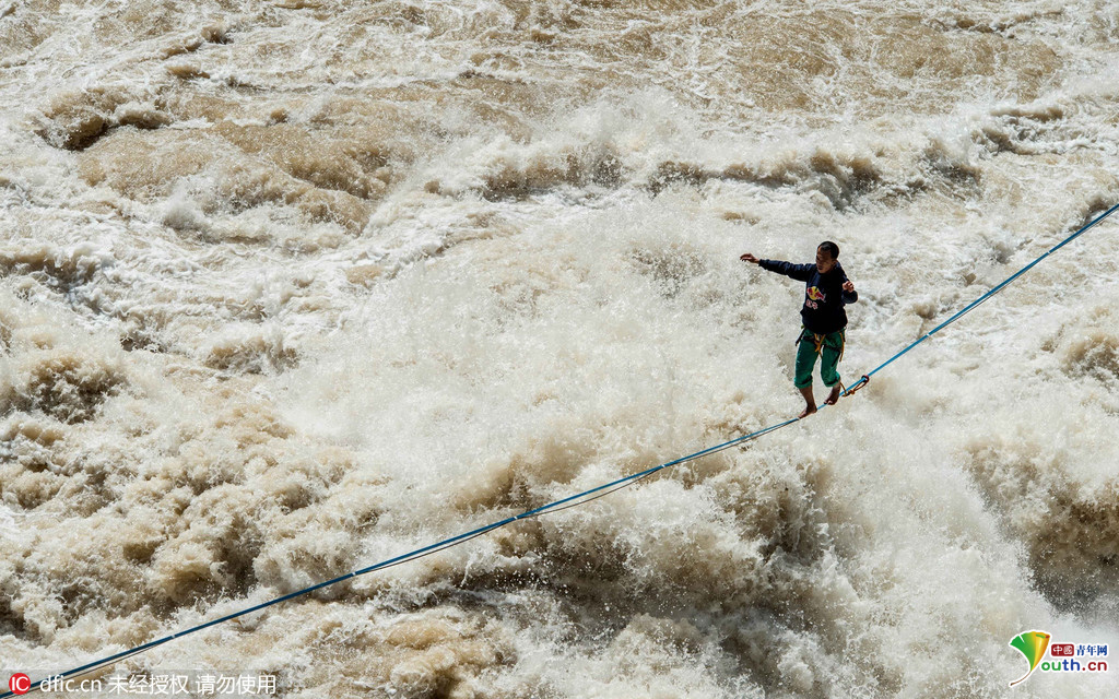 张亮当天挑战的位置在虎跳峡的最窄之处。扁带被架设在距离江面16米的高度,张亮计划在仅25毫米宽的扁带上行走60米。但挑战当天,虎跳峡刮起了5-6级大风,伴随着降温,这与张亮此前熟悉场地时的天气大为不同。出于谨慎的考虑,张亮先进行了多次试走,但效果均不理想。
