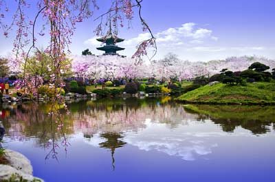 航拍武汉东湖樱花园:如云似霞