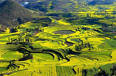 来到陕西汉中的油菜花海,满眼都是那无边无际的金黄色的原野,那朵朵花瓣如云霞般,风风火火地漫向天涯,就这样遍布在丘陵、山岗、房前、屋后,和着阳春三月的微风,摇曳多姿,引来蝴蝶飞舞。在媒体举办的“中国最美油菜花海”评选活动中,素有“小江南”之美誉的汉中艳压群芳,成为中国最美油菜花海。