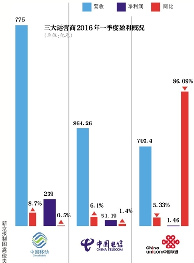 新京报讯 (记者刘素宏)4月28日,中国电信公布2016年第一季度财报,自此三大运营商一季度财报出齐。中国电信一季度经营收益73.64亿元,同比增长5.4%,股东应占利润51.19亿元,同比增长1.4%,在提速降费和流量不清零等政策因素影响下,净利润稳步提升。
