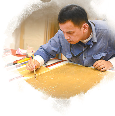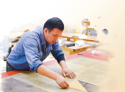 现在,褚昊带了几名年轻人,将书画修复这项非物质文化遗产传承下去。年轻人待磨砺,褚昊带着他们从拿面粉打浆糊开始做起,从练裁纸的“刀功”开始学起,从用棕刷刷墙开始练起。裁纸,要重压轻裁,半个针眼都错不得,差一点点裁口都会不如意;“棕帚功”,要练起码几个月,手上起了老茧,手腕有了软硬劲了,基本功才算扎实,3年打基础做好新画,练过七八年,算是可以踏入修旧画的门槛了……