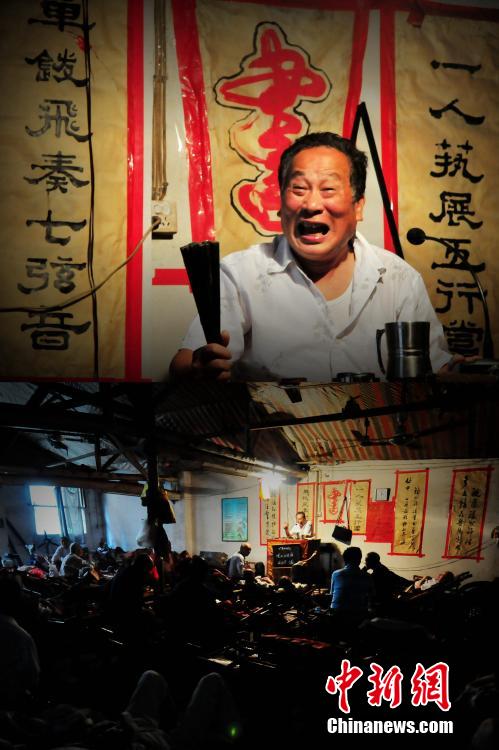 在福州汀州社区一栋座名为“玉叶书场”的老宅子里,一根惊堂木,一副铙钹,一张小木桌,就是福州评话老艺人表演的全部舞台。说书场里,每天都吸引了许多白发苍苍的老听众躺在躺椅上,听着有"中国曲艺活化石"之称的福州评话表演。上世纪30至60年代福州评话很流行,福州城乡街巷村头都有说书场。随着社会变迁发展,福州评话书场受到极大的市场冲击,讲评话的从500多人到如今只剩下30多人,年纪都在50岁以上。(拼版图片)(资料图片) 中新社记者 张斌 摄