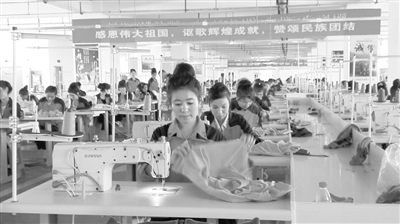 喀什深圳产业园里,少数民族产业工人正在工作中