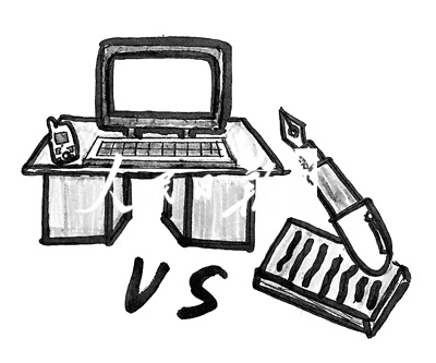 信息化很大程度上改变了人们的书写习惯。手机、电脑的使用,使留学生十分依赖各种输入法。相比每节课辛苦地用笔写下大量笔记,更习惯于用电脑打字记笔记,手写信件更不如电子邮件快捷方便。那么,“书写危机”是信息化惹的“祸”吗?
