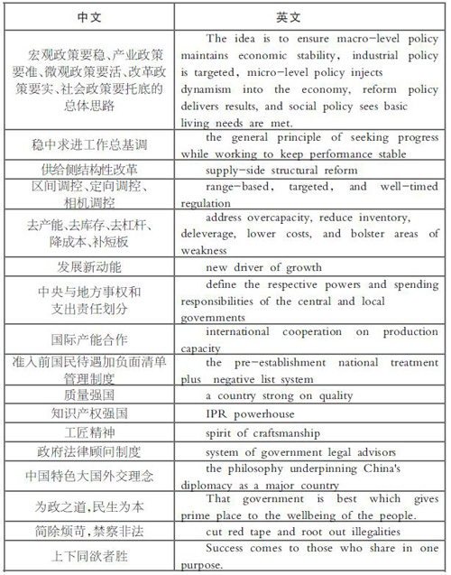 编者说明 本期发布的17条术语摘自今年3月份召开的十二届全国人大四次会议上的《政府工作报告》《关于2015年国民经济和社会发展计划执行情况与2016年国民经济和社会发展计划草案的报告》和《关于2015年中央和地方预算执行情况与2016年中央和地方预算草案的报告》,主要涉及“十三五”时期主要目标任务和重大举措以及2016年重点工作。既有宏观性概念,如“供给侧结构性改革”;也有新提法、新表述,如“去产能、去库存、去杠杆、降成本、补短板”;也有富有中国特色的表述,如“简除烦苛,禁察非法”。