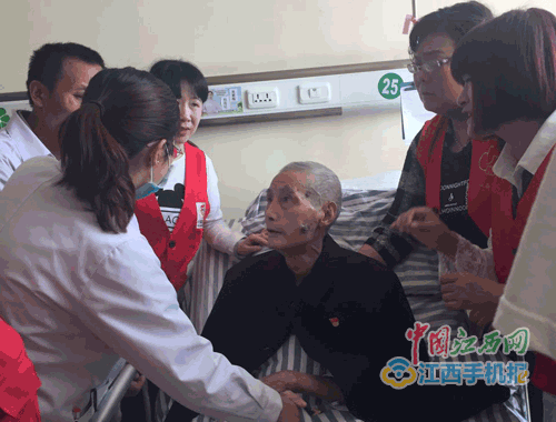 为了让老人住进敬老院得到更好的照顾,大伙儿想了一条“妙计”,先带蒋国珍去敬老院看看条件“参观一下”。到达罗坊镇敬老院后,该院院长陈文芬 十分热情,为蒋国珍安排住处,剃须洗漱。见老人还有一些不情愿,她对蒋老说:“就当来我们这做客,实在不习惯,过两天大家可以送你回家。”最后,蒋国珍留 在罗坊镇敬老院暂时住下,“体验”生活,社会各界纷纷前往敬老院探望他。3月7日,爱之缘志愿服务队的志愿者在探望蒋国珍时,发现老人全身浮肿、身体情况 不容乐观,便紧急联系新余市志愿者服务中心,将老人送往新余市人民医院接受治疗。