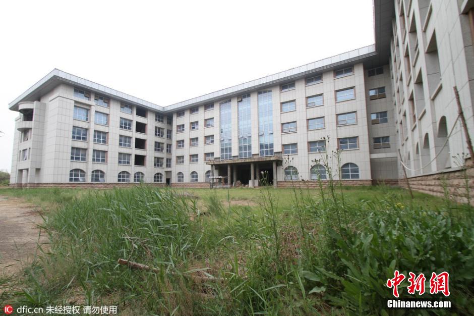 据了解,该酒店为一U型建筑群,占地60余亩,于2010年投入建设,内部装修按照“超五星”级标准共设计豪华套房数十间、标准间近200间。目前,该酒店工程已停工近四年之久,楼群场院内杂草丛生、满目苍夷,大量尚未使用的建材已经锈蚀残破,安装的管道、设备锈迹斑斑。 图片来源:东方IC 版权作品 请勿转载
