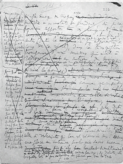 普鲁斯特《追寻逝去的时光》手稿第XX号练习本的最后一页,法国国家图书馆藏。