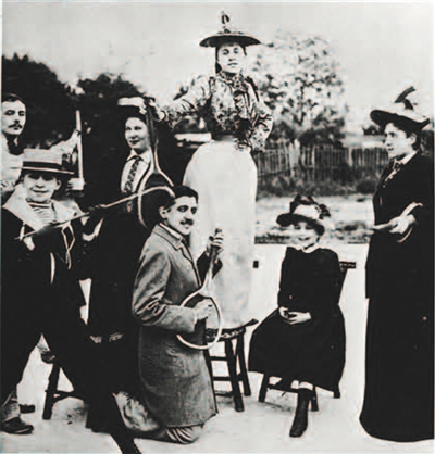 1891年,普鲁斯特(中)与朋友们游戏的场景。
