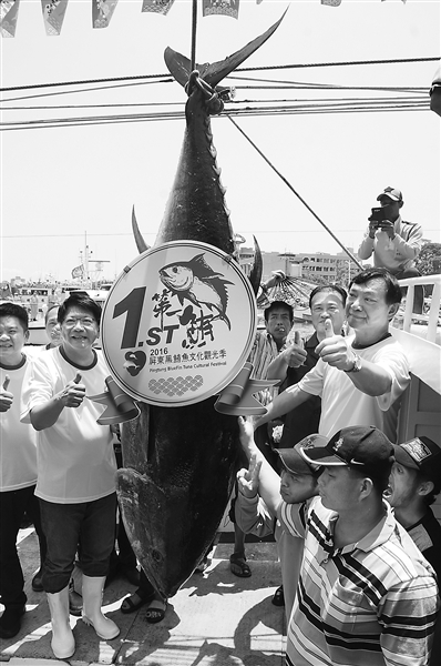 东港的“第一鲔”已经产生,重208公斤,拍出每公斤7600元、总价158.8万元的价格,仅次于2004年每公斤7800元的“第一鲔”,创下每公斤单价第2高纪录。今年的“第一鲔”由东港渔船“欣升庆126号”船长陈金益捕获,颇有点励志的意味。因为7年前,陈金益曾经捕到“第一鲔”,但因为没有及时回港,晚了15分钟失去了桂冠。7年来他念念不忘“第一鲔”,今年在捕捞海域驾船守了13天,终于捕捞到一尾大鱼,他根据渔业电台播报的消息,目测自己这尾鱼有可能是“第一鲔”时,从菲律宾巴丹岛东方海域狂飙24小时赶回渔港,经鉴定小组检查鱼的眼睛、嘴部、皮肤、尾巴颜色等,确认鱼在起钩时是活体,称重后被定为“第一鲔”。根据评选标准,“第一鲔”上岸时必须是活鱼,且重量不能低于180公斤,这是鲔鱼生长15年左右的体重。