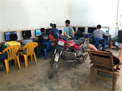 王宁攀湖南老家,学校外的黑网吧里,很多小学生在玩网游。 新京报记者 孙瑞丽 摄