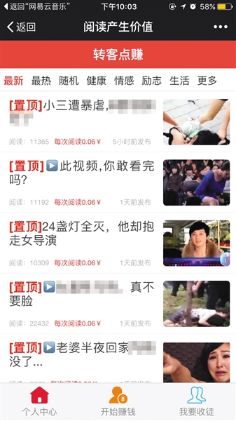 近日,新京报记者调查发现,鸡汤文大多由专门的微信公号或者APP等转发平台进行分发,注册人员再通过转发此类附带广告的文章来获取分成,每转发或点击一次1到6分钱;一篇10万+文章,转发平台可获得3万元左右的灰色收入。