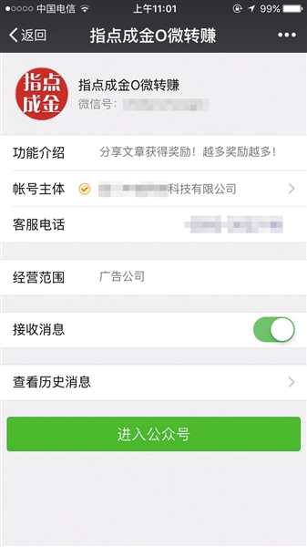 “去年年底,转发平台业务量达到高峰。伴随此现象,微信方面的封号屏蔽力度也开始加大。很多积累到大量用户的转发平台都开发了APP。或是通过公众号转入第三方链接来规避。”他说。