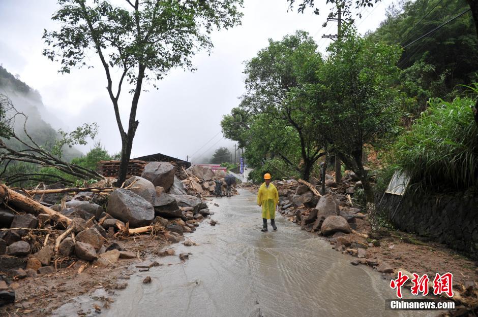 5月8日,强降雨造成福建泰宁县突发大型自然灾害泥石流,造成中国华电集团所属池潭水电站厂扩建工程项目部办公楼和宿舍被埋。截至17:30,该灾害已造成8人送医院救治,33人失联。图为道路破坏严重。 吕明 摄