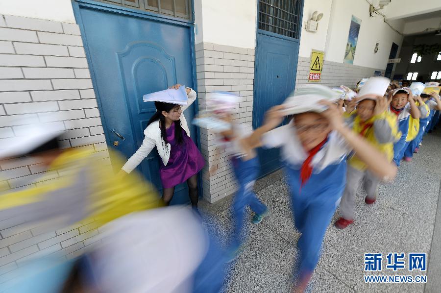 5月11日,永宁县第三小学师生在开展地震应急演练。在“5·12”全国防灾减灾日到来前夕,宁夏永宁县各中小学校开展形式多样的活动,通过地震应急演练、地震知识学习、各类衍生灾害应对训练等内容,提升师生们对地震及其衍生灾害的应对能力。新华社记者 彭昭之摄