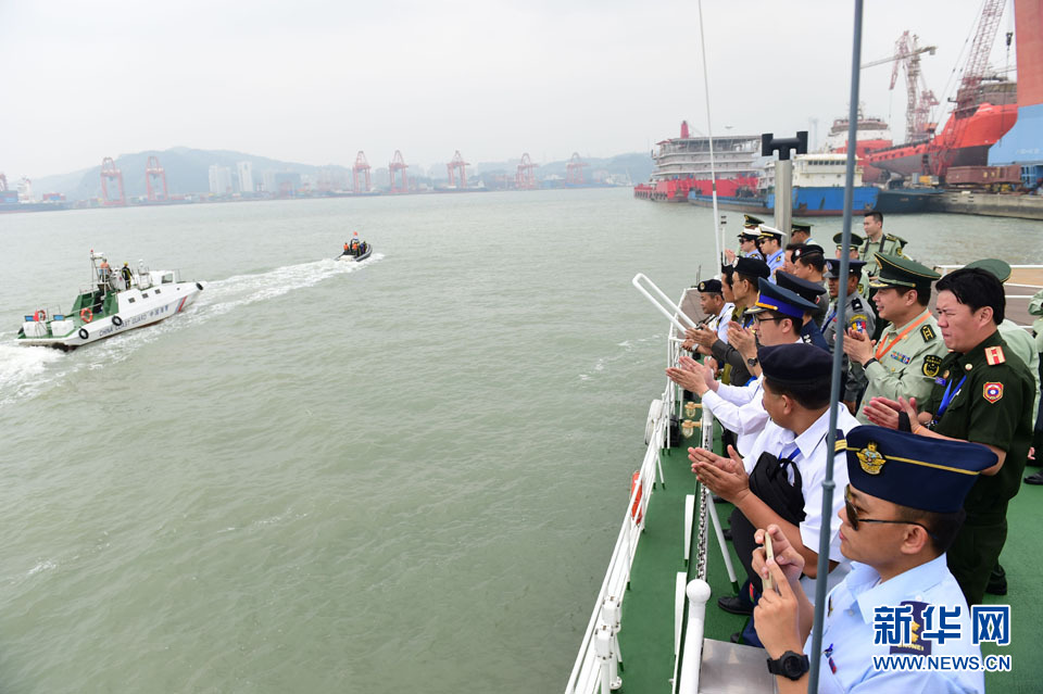与会代表观摩福建海警第三支队海上救生演练。中国海警局供图 新华网发