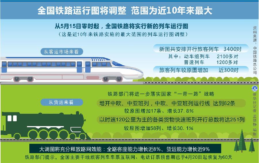 从5月15日零时起,全国铁路实行新的列车运行图。这是近10年来铁路实施的最大范围的列车运行图调整,也是铁路运输能力增量最大的一次调整。那么与原图相比,有哪些新变化?对你我出行有何影响?