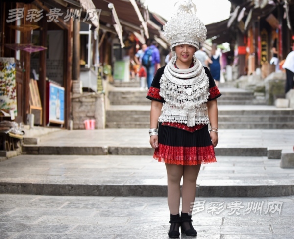采访当天,张谨特意穿着这套只有在出嫁和重大节日才会隆重搭配全套盛装银饰的得意之作展示给记者,也令在青岩古镇过往的游客们惊叹不已,纷纷拍照留念。