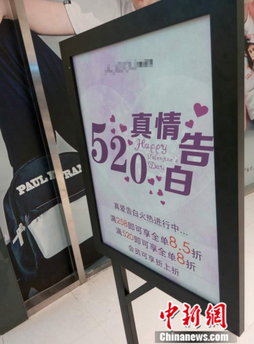 北京朝阳大悦城,一商家推出“520”促销活动。吕春荣 摄