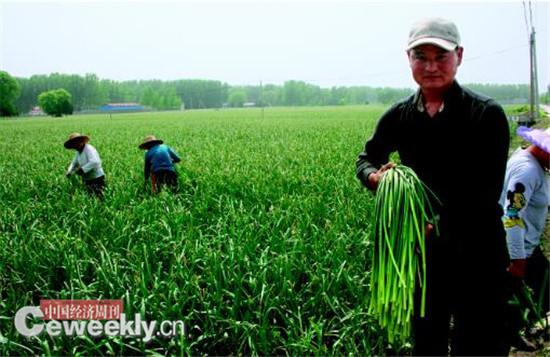 蒜农在田里抽蒜薹《中国经济周刊》记者 刘照普I 摄