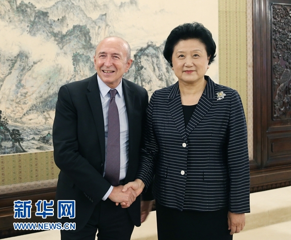 5月25日,中国国务院副总理刘延东在北京中南海紫光阁会见法国参议员、里昂市长科隆。 新华社记者 姚大伟 摄