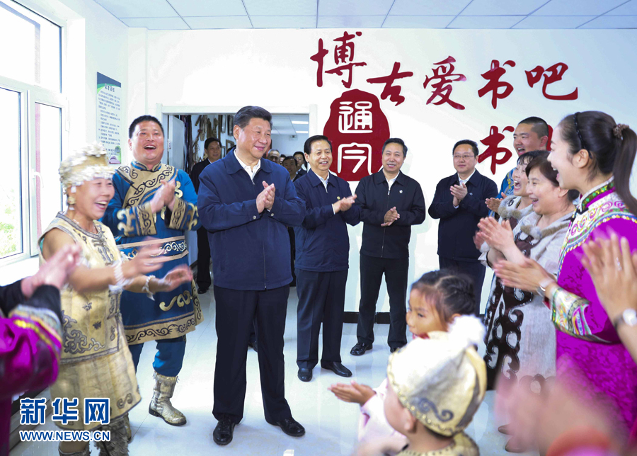 5月23日至25日,中共中央总书记、国家主席、中央军委主席习近平在黑龙江考察调研。这是5月24日下午,习近平在佳木斯市同江市八岔赫哲族乡八岔村观看伊玛堪说唱教学。 新华社记者 兰红光 摄