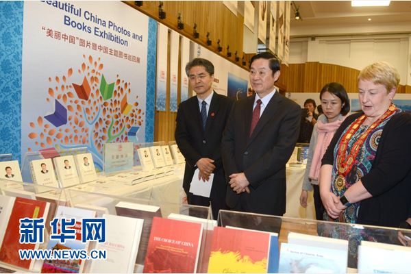 5月25日,在新西兰昆斯敦,中共中央政治局委员、中央书记处书记、中宣部部长刘奇葆(左二)出席“美丽中国”图片暨中国主题图书巡回展开幕式。应新西兰总理、国家党领袖约翰·基邀请,中共中央政治局委员、中央书记处书记、中宣部部长刘奇葆率中共代表团于5月24日至26日访问新西兰。新华社记者秦晴摄