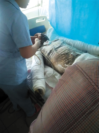 5月25日上午8点,南阳南石医院内,王锋进行了第一次植皮手术。手术持续了两个多小时,清理的皮肤占全身面积约2%。