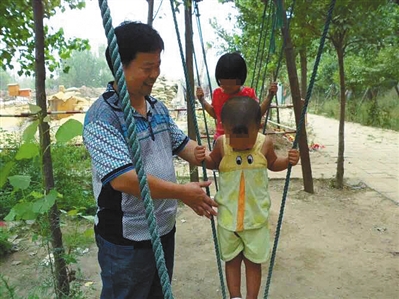 烧伤前的王锋与孩子在一起。图/视觉中国