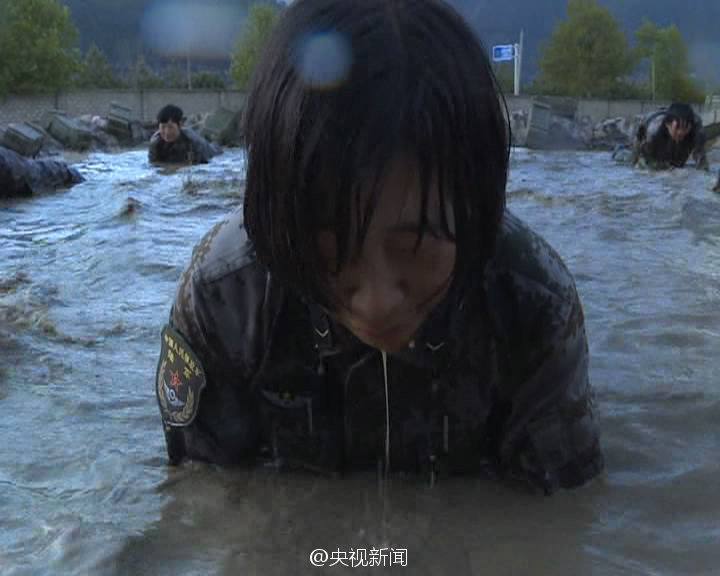 女兵在水中训练。 央视记者杨渊 图片来源:央视新闻微博