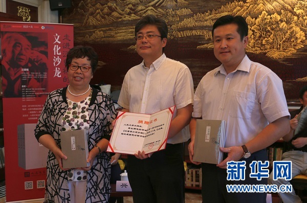 发布会上,人民文学出版社分别向北京市西城区第一图书馆馆长阎峥与北京市西城区“阅读推广+”理事长郭斌赠送了这套《汪曾祺小说全编》。
