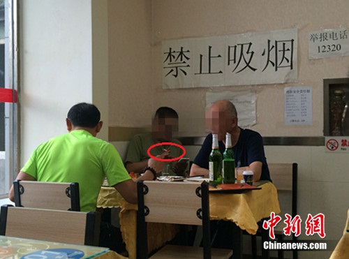 北京某餐馆,一男子在“禁止吸烟”的标识下抽烟。中新网邱宇 摄