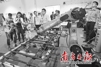 广工大数控装备协同创新研究院服务的企业遍及珠三角城市。图为市民参观该院内展出的智能机器人。南方日报记者 戴嘉信 摄