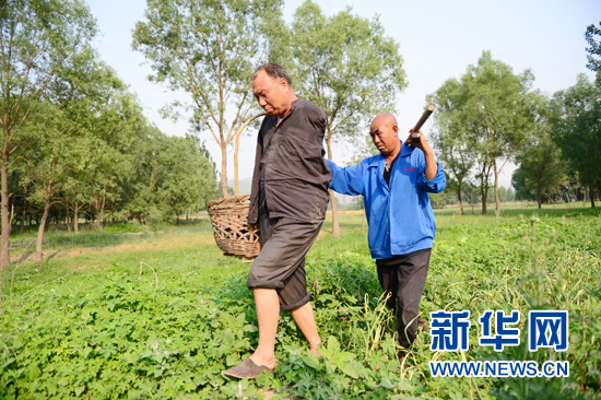 5月31日,贾文其(左)和贾海霞走在去往河滩树林的路上。新华社记者 朱旭东 摄