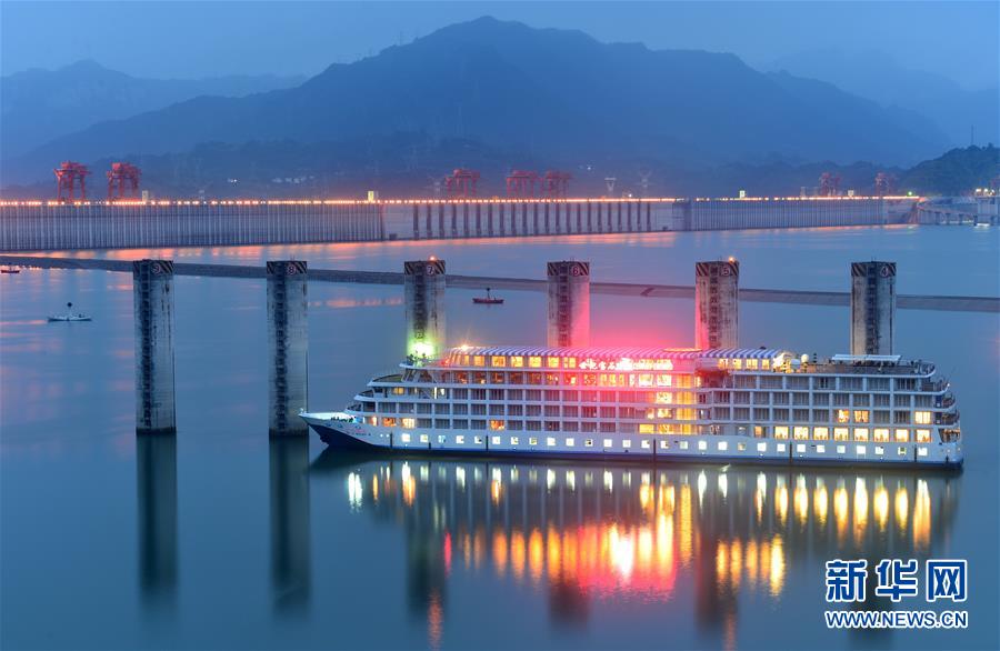 6月1日,船舶停靠在三峡大坝前等待通过三峡五级船闸。当日,长江中下游地区正式进入主汛期。长江防总安排部署三峡及上游水库群加快腾库应对主汛期到来。6月1日8时,三峡水库水位147.89米,出库流量提高至17100立方米每秒。按照消落计划,三峡水库在6月10日之前,库水位消落至145米汛限水位,为未来可能发生的大洪水腾出库容。新华社发(郑家裕 摄)