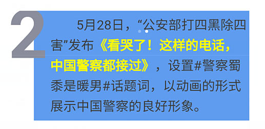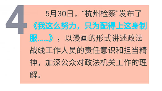 本周,“公安部交通安全微发布”、“公安部打四黑除四害”、“中国环境宣传教育”、“杭州检察”等账号分别采用视频、动漫等形式宣传政策信息,发布提示预警,展示工作人员良好形象。