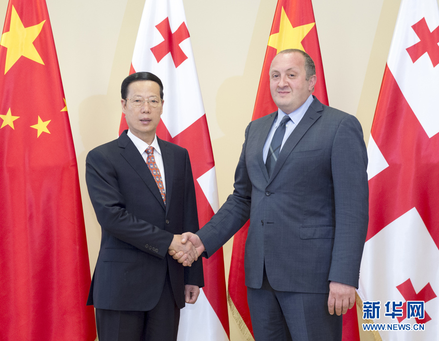 6月3日,应邀访问格鲁吉亚的国务院副总理张高丽在第比利斯会见格鲁吉亚总统马尔格韦拉什维利。 新华社记者 王晔 摄