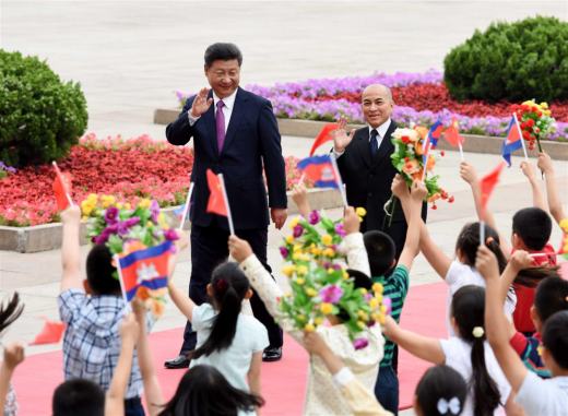 去年9月,西哈莫尼国王应邀登临天安门城楼,出席了中国人民抗日战争暨世界反法西斯战争胜利70周年纪念活动,柬埔寨军方也派出代表队参加阅兵分列式。