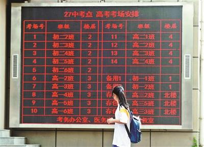 今年27中还在电子显示屏上播放考场位置,并在校园内摆放考场分布图,方便学生顺利进入考场。学校还特意为考生在学校的教学北楼准备了“存包处”,“带包进入的考生必须存包,考生存包仅需要几秒钟。”袁利军说。