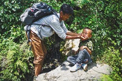 补充完水后,孩子们继续往前走,6岁的陈木黑一路对陈古吉说“爸爸,我又累又饿,我们为什么走这么远的道,还有多远。”