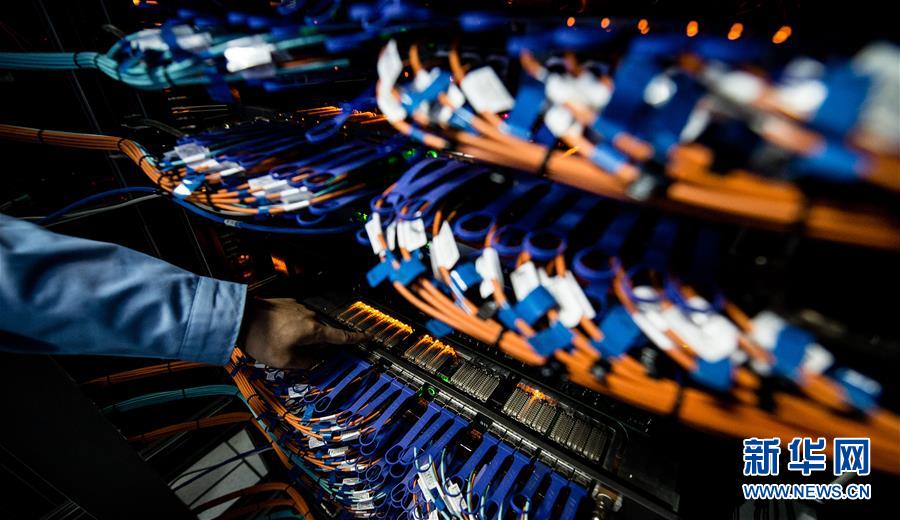 这是“神威太湖之光”超级计算机的交换机网线(6月16日摄)。“神威太湖之光”采用大规模高流量复合网络体系结构,实现全系统高带宽、低延迟通信。 6月20日,新一期全球超级计算机500强榜单公布,使用中国自主芯片制造的“神威太湖之光”取代“天河二号”登上榜首,中国超算上榜总数量也有史以来首次超过美国名列第一。据国际TOP500组织当天发布的榜单,“神威太湖之光”的浮点运算速度为每秒9.3亿亿次,不仅速度比第二名“天河二号”快出近两倍,其效率也提高3倍。更重要的是,与“天河二号”使用英特尔芯片不一样,“神威太湖之光”使用的是中国自主知识产权的芯片。 “神威太湖之光”由国家并行计算机工程技术研究中心研制,安装在国家超级计算无锡中心。此前,由中国国防科技大学研制的“天河二号”超级计算机已在TOP500榜单上连续六度称雄。新华社记者李响摄