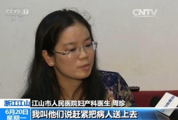江山市人民医院妇产科医生周珍:我叫他们赶紧把病人送上去,因为自己突然间出现这种情况,我想交接班都交不了,全身都不会动了,然后我一直一直说,病人是我接回来的,我希望她没事。