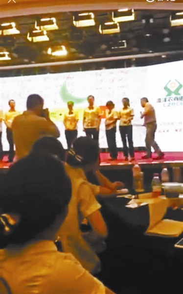 据他介绍,事情发生在6月18日,当天参加培训会的是漳泽农商银行的一线员工,部分领导在场。“会上有一个游戏任务的环节,视频中在台上的那组员工是最后一名,所以讲师就有了这个行为。”