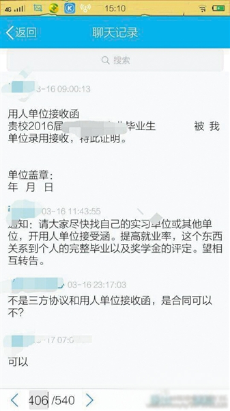 该老师还称,未上交就业协议和劳动合同的学生将不予评定“优秀毕业生”及奖学金补贴;凡在5月31日之前上交的学院予以100元就业补助。