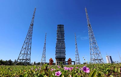 图为长征七号运载火箭发射塔架(6月17日摄)。新华社记者 曾涛 摄