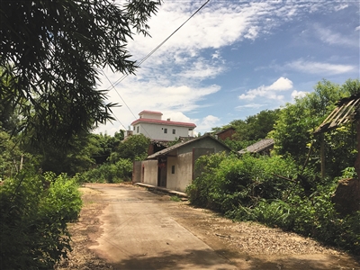 兴宁市胜青村,刘小华的老家是远处那幢两层的楼房。村民说这幢房子很少有人住。新京报记者 刘子珩 摄